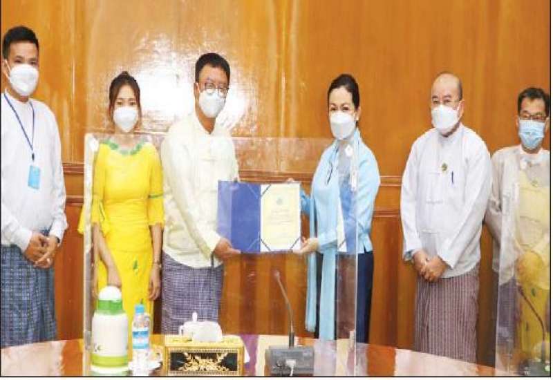 လူမှုဝန်ထမ်း၊ ကယ်ဆယ်ရေးနှင့်ပြန်လည်နေရာချထားရေးဝန်ကြီးဌာနသို့ Myanmar Royal Fortune ကုမ္ပဏီနှင့် Myanmar Royal Golden Elephant Medical Device ကုမ္ပဏီတို့က အနွေးထည် ၄၀၀၀ ကို ယနေ့နံနက်ပိုင်းတွင် လာရောက်ပေးအပ်လှူဒါန်းရာ ပြည်ထောင်စုဝန်ကြီး ဒေါက်တာသက်သက်ခိုင်က လက်ခံရယူပြီး ဂုဏ်ပြုမှတ်တမ်းလွှာ ပြန်လည်ပေးအပ်သည်။