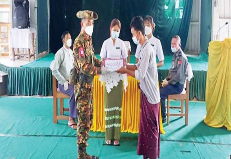 ချင်းပြည်နယ် ပလက်ဝမြို့နယ်အတွင်းရှိ ကျေးရွာ များမှ တိုက်ပွဲရှောင်ပြည်သူများ နေရပ်ပြန်နိုင်ရေး အတွက် နေအိမ်အသစ် ဆောက်လုပ်ခြင်းနှင့် နေအိမ်များ ပြန်လည်ပြုပြင်ရန် ထောက်ပံ့ငွေများ ပေးအပ်ခြင်းကို အောက်တိုဘာ ၁၂ ရက် နံနက်ပိုင်းတွင် ပလက်ဝမြို့ မြို့မရပ်ရှိ အမှတ်(၁) အခြေခံပညာ အထက်တန်းကျောင်း သင်ခန်းမ၌ ပြုလုပ်ရာ အနောက်ပိုင်းတိုင်းစစ်ဌာနချုပ်၊ နယ်မြေခံတပ်မှ တာဝန်ရှိသူများ၊ မြို့နယ်စီမံအုပ်ချုပ်ရေးအဖွဲ့ဝင်များ၊ ဌာနဆိုင်ရာတာဝန်ရှိသူများနှင့် တိုက်ပွဲရှောင် ပြည်သူများ တက်ရောက်ကြသည်။