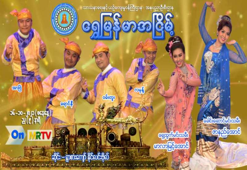 အများပြည်သူ ပျော်ရွှင်စေရန်၊ အပန်းပြေစေရန်နှင့် စိတ်ခွန်အားသစ်များ ရရှိနိုင်ရန်အတွက် မြန်မာ့အသံနှင့်ရုပ်မြင်သံကြားမှ ဖျော်ဖြေရေးအစီအစဉ်များကို တင်ဆက်လျက်ရှိရာ “ရွှေမြန်မာအငြိမ့်” ဖျော်ဖြေပွဲကို အောက်တိုဘာ (၁၆)ရက်၊ စနေနေ့ ည(၈) နာရီ သတင်းအပြီးတွင် မြန်မာ့အသံနှင့်ရုပ်မြင်သံကြား၏ MRTV-HD Channel မှ ထုတ်လွှင့် ပြသမည်ဖြစ်သည်။