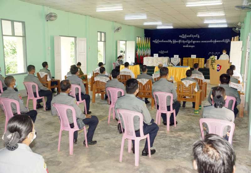 နေပြည်တော် ကောင်စီမှ ကိုဗစ်-၁၉ရောဂါ တားဆီးကာကွယ်ရေးလုပ်ငန်းများကို စွမ်းစွမ်း တမံပါဝင် ဆောင်ရွက် ခဲ့ကြသည့် မြန်မာနိုင်ငံရဲတပ်ဖွဲ့ဝင်များကို စားသောက်ကုန်များ ထောက်ပံ့ခြင်း အခမ်းအနားကို ယနေ့နံနက်(၉)နာရီတွင် နေပြည်တော်ရဲတပ်ဖွဲ့မှူးရုံး အစည်းအဝေးခန်းမ၌ ကျင်းပသည်။