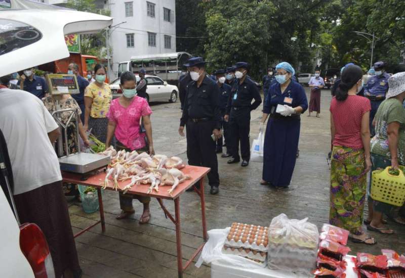 ရန်ကုန်တိုင်းဒေသကြီး စည်ပင်သာယာရေးဝန်ကြီး၊ ရန်ကုန်မြို့တော် စည်ပင်သာယာရေးကော်မတီ၊ ဥက္ကဋ္ဌ(မြို့တော်ဝန်) ဦးဗိုလ်ဌေးသည် ယနေ့နံနက် ၇ နာရီတွင် ဒဂုံမြို့နယ်၊ ရန်ကုန်တိုင်းဒေသကြီးအစိုးရအဖွဲ့ ဝန်ထမ်းအိမ်ရာဝင်း၌ မြို့ပြပတ်ဝန်းကျင် ထိန်းသိမ်းရေးနှင့် သန့်ရှင်းရေးဌာန၏ ကြီးကြပ်မှုဖြင့် ကုန်စိမ်းများ၊ မီးဖိုချောင်သုံး ကုန်ခြောက်မျိုးစုံ၊ အသား မျိုးစုံနှင့် ငါး/ပုဇွန် အမျိုးမျိုးတို့ကို ရွေ့လျားဈေးကား (Mobile Market) စနစ်ဖြင့် ရောင်းချနေမှု ကို ကြည့်ရှုစစ်ဆေးပြီး လိုအပ်သည်များ မှာကြားသည်။