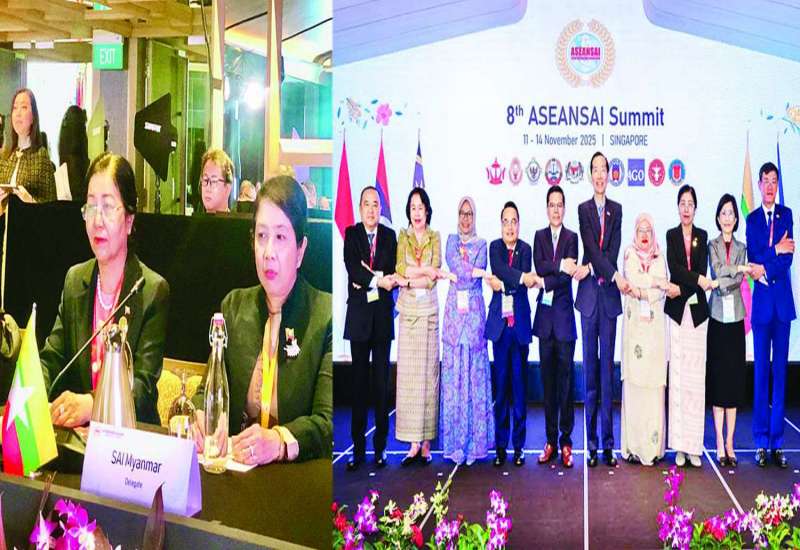 စင်ကာပူနိုင်ငံ၌ နိုဝင်ဘာ ၁၂ ရက်မှ ၁၄ ရက်အထိ ကျင်းပသည့် အရှေ့တောင်အာရှနိုင်ငံများဆိုင်ရာ စာရင်းစစ်ချုပ်ရုံးများအဖွဲ့ (ASEANSAI)၏ (၈) ကြိမ်မြောက် ထိပ်သီးအစည်းအဝေးသို့ ပြည်ထောင်စုစာရင်းစစ်ချုပ် ဒေါက်တာခင်နိုင်ဦး ဦးဆောင်သော မြန်မာကိုယ်စားလှယ်အဖွဲ့ တက်ရောက်ခဲ့ပြီး ယနေ့ညနေပိုင်းတွင် ရန်ကုန်မြို့သို့ ပြန်လည်ရောက်ရှိသည်။