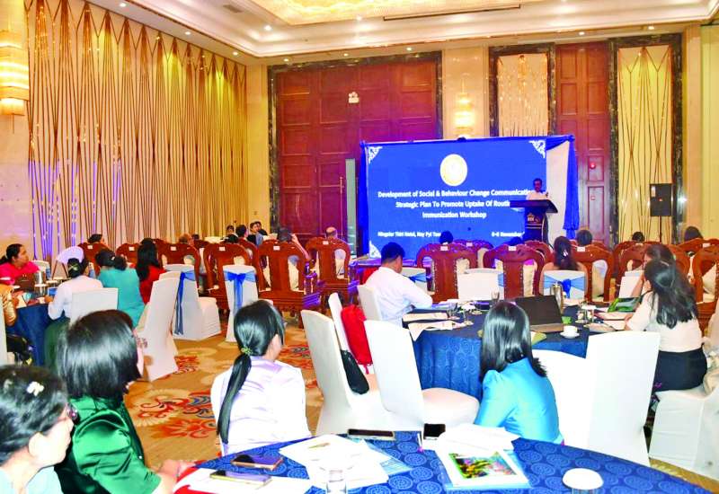 ကျန်းမာရေးဝန်ကြီးဌာန ပြည်သူ့ကျန်းမာရေးဦးစီးဌာန ကျန်းမာရေးအသိပညာ မြှင့်တင်ရေးဌာနခွဲမှ တိုးချဲ့ကာကွယ်ဆေးထိုးလွှမ်းခြုံမှု မြင့်မားစေရေး လူမှုရေးနှင့်အမူအကျင့်ပြောင်းလဲရေးဆိုင်ရာ Strategic Plan ထွက်ပေါ်ရေး အလုပ်ရုံဆွေးနွေးပွဲဖွင့်ပွဲကို ယနေ့နံနက်ပိုင်းတွင် နေပြည်တော် မင်္ဂလာသီရိဟိုတယ်၌ ကျင်းပသည်။