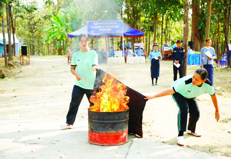 ပြည်ထောင်စု ရာထူးဝန်အဖွဲ့၏ မီးဘေးလုံခြုံရေးအတွက် အထောက်အကူပြုစေမည့် မီးဘေးလုံခြုံရေးဆိုင်ရာ မီးငြှိမ်းသတ်စက်နှင့် မီးသတ်ပစ္စည်းများကိုင်တွယ်အသုံးပြု၍ မီးသတ်ကျွမ်းကျင်မှုစွမ်းရည်ပြိုင်ပွဲကို ယနေ့မွန်းလွဲပိုင်းတွင် ပြည်ထောင်စုရာထူးဝန်အဖွဲ့ ရုံးအမှတ်(၁၇)၌ကျင်းပရာ ပြည်ထောင်စုရာထူးဝန်အဖွဲ့ဥက္ကဋ္ဌ ဦးစိုးမင်းဦး၊ အဖွဲ့ဝင်များဖြစ်သည့် ဦးဆန်းမြင့်၊ ဒေါ်ခင်မျိုးမြင့်၊ ဦးရဲနိုင်၊ ဦးစိုးတင့်၊ ဦးကျော်မျိုးထွဋ်၊ အမြဲတမ်းအတွင်းဝန်၊ ညွှန်ကြားရေးမှူးချုပ်များနှင့် တာဝန်ရှိသူများ တက်ရောက်ကြသည်။