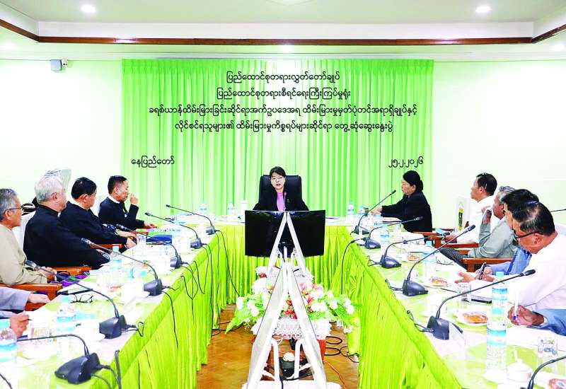 ခရစ်ယာန်ထိမ်းမြားခြင်းဆိုင်ရာ အက်ဥပဒေအရ ထိမ်းမြားခြင်းကိစ္စရပ်များ အဆင်ပြေချောမွေ့စွာ ဆောင်ရွက်နိုင်ရေးအတွက် ထိမ်းမြားမှုမှတ်ပုံတင် အရာရှိချုပ်နှင့် ထိမ်းမြားမှု လိုင်စင်ရသူများ၏ တွေ့ဆုံဆွေးနွေးပွဲအခမ်းအနားကို ဖေဖော်ဝါရီ ၂၅ ရက် နံနက် ၉ နာရီတွင် ပြည်ထောင်စုတရားစီရင်ရေးကြီးကြပ်မှုရုံး အစည်းအဝေးခန်းမ၌ In Person / Virtual စနစ်ဖြင့်ကျင်းပသည်။