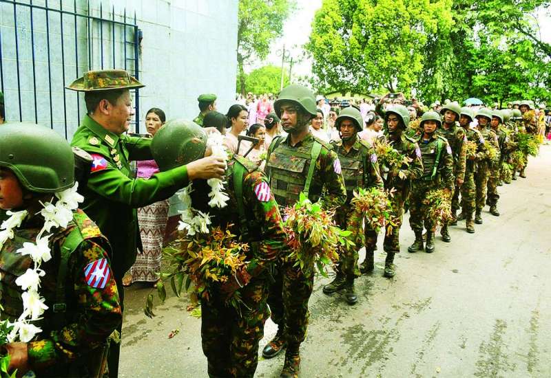 ရှေ့တန်းစစ်မျက်နှာများတွင် ရွပ်ရွပ်ချွံချွံတိုက်ပွဲဝင်ပြီး အောင်ပွဲအလီလီရယူနိုင်ခဲ့သော အောင်ပွဲရရှေ့တန်းပြန်တပ်မတော်သားများအား ဂုဏ်ပြုကြိုဆိုခြင်းကို ယမန်နေ့ညနေပိုင်းတွင် မိုင်းပွန်မြို့ရှိ နယ်မြေခံတပ်၌ပြုလုပ်ရာ အရှေ့အလယ်ပိုင်းတိုင်းစစ်ဌာနချုပ်တိုင်းမှူး ဗိုလ်ချုပ် စိုးမြတ်ထွဋ်နှင့်အဖွဲ့ဝင်များ၊ အရာရှိ၊ စစ်သည်၊ မိသားစုဝင်များ၊ ဌာနဆိုင်ရာ တာဝန်ရှိသူများ၊ ဒေသခံတိုင်းရင်းသား ပြည်သူများ၊ ဆရာ/ဆရာမများ တက်ရောက်ကြသည်။