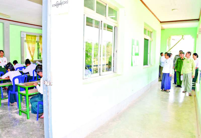 နေပြည်တော်ကောင်စီဥက္ကဋ္ဌ ဦးသန်းထွန်းဦးသည် နေပြည်တော်ကောင်စီဝင်များ၊ တာဝန်ရှိသူများနှင့်အတူ ယနေ့နံနက်ပိုင်းတွင် နေပြည်တော်ဇမ္ဗူသီရိမြို့နယ်အမှတ် (၁၄) အခြေခံပညာအထက်တန်းကျောင်း စာစစ်ဌာနသို့ရောက်ရှိပြီး ၂၀၂၃-၂၀၂၄ ပညာသင်နှစ် တက္ကသိုလ်ဝင်စာမေးပွဲ ဒုတိယနေ့အင်္ဂလိပ်စာဘာသာရပ်ကို ကျောင်းသားကျောင်းသူများ အေးချမ်းစွာဖြေဆိုနေမှုကို လှည့်လည်ကြည့်ရှု အားပေးသည်။
