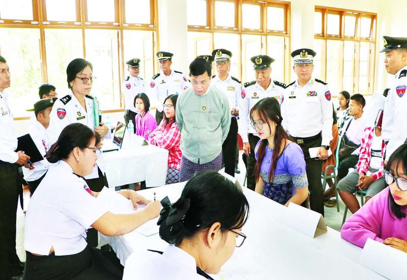 လူဝင်မှုကြီးကြပ်ရေးနှင့်ပြည်သူ့အင်အားဝန်ကြီးဌာန ပြည်ထောင်စုဝန်ကြီး ဦးမြင့်ကြိုင်သည် တာဝန်ရှိသူများနှင့်အတူ ယနေ့နံနက်ပိုင်းတွင် တောင်ငူခရိုင် အထွေထွေအုပ်ချုပ်ရေးဦးစီးဌာန အစည်းအဝေးခန်းမသို့ရောက်ရှိရာ ခေတ္တခရိုင်အုပ်ချုပ်ရေးမှူး ဦးညီညီလွင်စိုးနှင့် တာဝန်ရှိသူများက ခရိုင်အတွင်း နယ်မြေဒေသအခြေအနေ၊ မြေပြင်ကွင်းဆင်း ကောက်ယူခဲ့သည့်စာရင်းများ စိစစ်အတည်ပြုဆောင်ရွက်မှု၊ ပန်းခင်းစီမံချက်နှင့် ပြည်လုံးကျွတ်သန်းခေါင် စာရင်းကောက်ယူရေးအတွက် ဆောင်ရွက်မှု အခြေအနေများကို ရှင်းလင်းတင်ပြကြသည်။