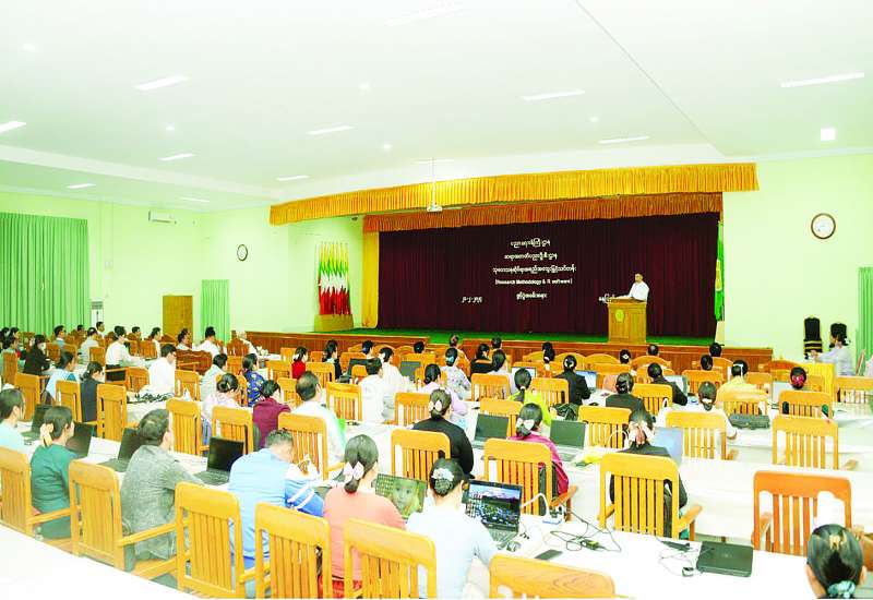 ပညာရေးဒီဂရီကောလိပ် ဆရာ ဆရာမများအတွက် သုတေသနဆိုင်ရာအရည်အသွေးမြှင့် သင်တန်းဖွင့်ပွဲ အခမ်းအနားကို ယနေ့နံနက် ၉ နာရီတွင် နေပြည်တော် ပညာရေးဝန်ကြီးဌာန ရုံးအမှတ်(၁၃)ရှိ အစည်းအဝေး ခန်းမ၌ကျင်းပရာ ပညာရေးဝန်ကြီးဌာန ပြည်ထောင်စုဝန်ကြီး ဒေါက်တာညွန့်ဖေ၊ အမြဲတမ်းအတွင်းဝန် ဒေါက်တာစိုးဝင်း၊ ပညာရေးဝန်ကြီးဌာနရှိ ဦးစီးဌာနများမှ ညွှန်ကြားရေးမှူးချုပ်များ၊ ဒုတိယအမြဲတမ်းအတွင်းဝန်များ၊ ဒုတိယညွှန်ကြားရေးမှူးချုပ်များ၊ ပညာရေးဒီဂရီကောလိပ်များမှ သင်တန်းသား ဆရာ ဆရာမများနှင့် ဆရာအတတ်ပညာဦးစီးဌာနမှ တာဝန်ရှိသူများ တက်ရောက်ကြသည်။
