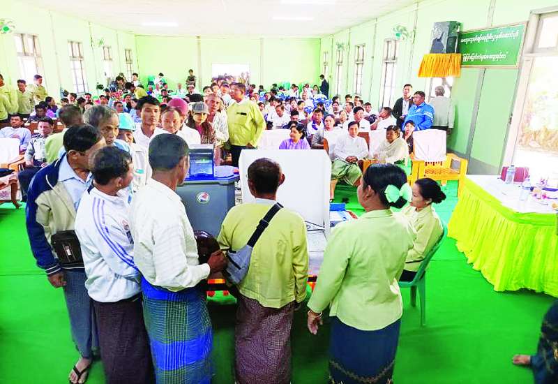 ဧရာဝတီတိုင်းဒေသကြီးနယ်မြေ မဲဆန္ဒရှင်ပြည်သူများ မြန်မာအီလက်ထရောနစ်မဲပေးစက်ဖြင့် လက်တွေ့စမ်းသပ် မဲပေးလေ့လာခြင်းကို ဖေဖော်ဝါရီ ၇ ရက်မှစ၍ ဆောင်ရွက်လျက်ရှိရာ ယနေ့တွင် လေးမျက်နှာမြို့နယ် ရပ်ကွက်/ကျေးရွာအုပ်စု ၄၈ ခုမှ ပြည်သူ ၅၁၄ ဦး(အပေါ်ပုံ)၊ မအူပင်မြို့နယ် ရပ်ကွက် / ကျေးရွာအုပ်စု ၈၈ ခုမှ ပြည်သူ ၆၉၆ ဦး စုစုပေါင်း ၁၂၁၀ တက်ရောက်၍ လက်တွေ့စမ်းသပ် မဲပေးလေ့လာကြသည်။