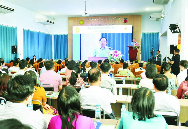 မြန်မာနိုင်ငံ သွေးတိုးရောဂါပညာရပ်ဆိုင်ရာညီလာခံ (၂၀၂၄) ဖွင့်ပွဲအခမ်းအနားကို ယနေ့နံနက်ပိုင်းတွင် ဆေးတက္ကသိုလ် (၁) ရန်ကုန် Medical Skill, Simulation and Research Center (MSSRC) ၌ ကျင်းပရာ ကျန်းမာရေးဝန်ကြီးဌာန ပြည်ထောင်စုဝန်ကြီး ဒေါက်တာသက်ခိုင်ဝင်း တက်ရောက်အဖွင့်အမှာစကား ပြောကြားသည်။