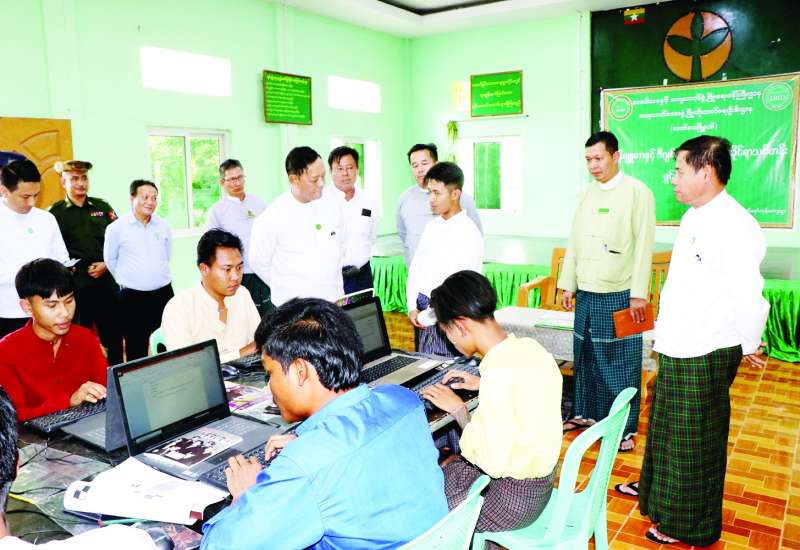 သမဝါယမနှင့် ကျေးလက်ဖွံ့ဖြိုးရေးဝန်ကြီးဌာန ပြည်ထောင်စုဝန်ကြီး ဦးလှမိုးသည် အမြဲတမ်းအတွင်းဝန်၊ တာဝန်ရှိသူများနှင့်အတူ ယနေ့မွန်းလွဲပိုင်းတွင် လယ်ဝေးမြို့နယ် သော်မှော်ကုန်းစံပြကျေးရွာအပါအဝင် ကျေးရွာ ၄၃ ရွာ၌ ICT စင်တာများ ထူထောင်၍ ဒစ်ဂျစ်တယ်နည်းပညာ ဖြန့်ဖြူးရေးလုပ်ငန်းများ ဆောင်ရွက်ပေးနေမှုကို သွားရောက်ကြည့်ရှုစစ်ဆေးသည်။