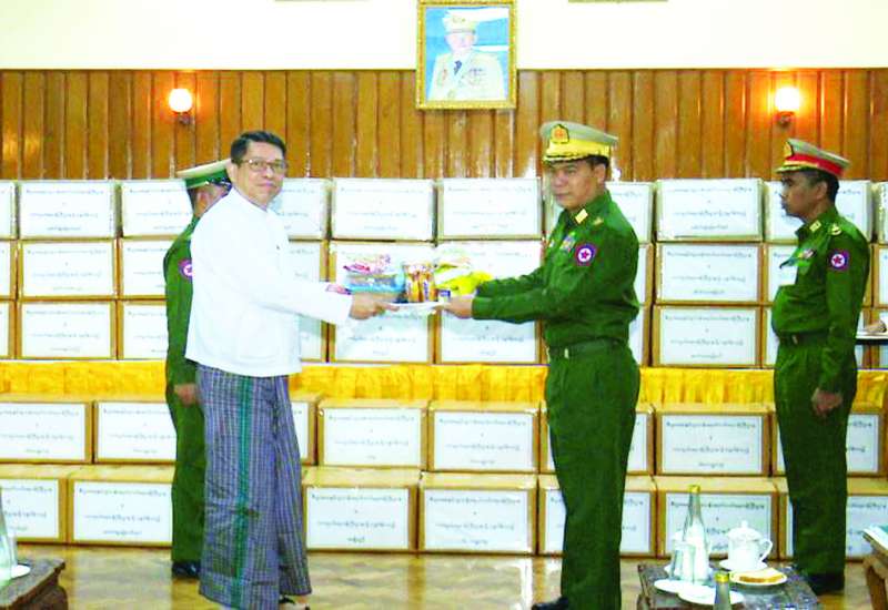 စီးပွားရေးနှင့် ကူးသန်းရောင်းဝယ်ရေးဝန်ကြီးဌာနမှ စေတနာရှင် အလှူရှင်များက နိုင်ငံတော်လုံခြုံရေးနှင့် ကာကွယ်ရေးတာဝန်များကို စွမ်းစွမ်းတမံထမ်းဆောင်လျက်ရှိသော လုံခြုံရေးတပ်ဖွဲ့ဝင်များအတွက် စားသောက်ဖွယ်ရာများ ပေးအပ်ခြင်း အခမ်းအနားကို ယနေ့တွင် နေပြည်တော်တိုင်းစစ်ဌာနချုပ်ရှိ ပေါင်းလောင်းရိပ်သာ၌ ကျင်းပပြုလုပ်သည်။