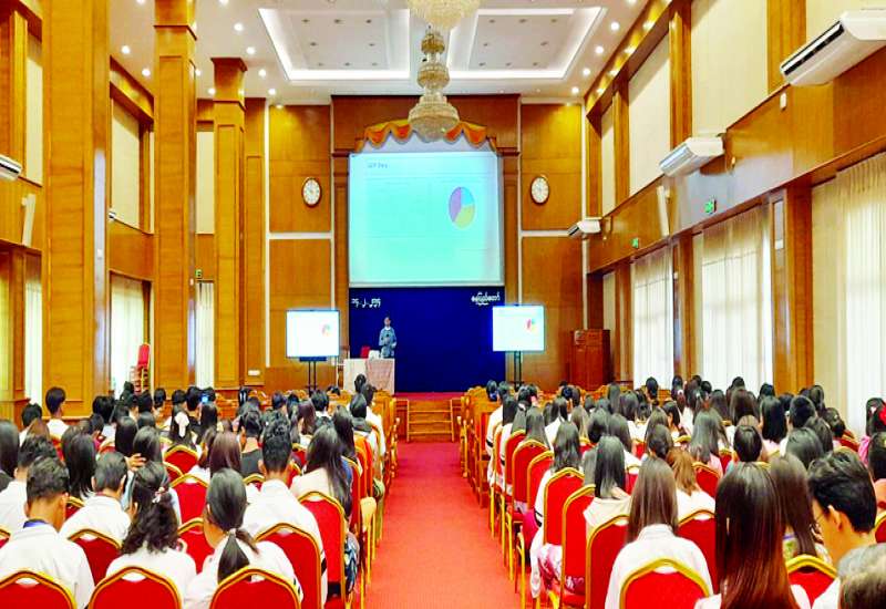 ကျောင်းသားလူငယ်များ စီးပွားရေးဆိုင်ရာ အသိဉာဏ်ဗဟုသုတများ တိုးပွားစေရန်၊ အနာဂတ်တိုင်းပြည်၏ စီးပွားရေးဖွံ့ဖြိုးတိုးတက်မှုကို အထောက်အကူပြုနိုင်စေရန် ရည်ရွယ်၍ မြန်မာ့စီးပွားရေး အဆောက်အအုံဖွံ့ဖြိုးတိုးတက်မှုအတွက် အရေးပါသော မက်ခရိုဘောဂဗေဒ ညွှန်းကိန်းများဆိုင်ရာ ဟောပြောပို့ချခြင်းအခမ်းအနားကို ယနေ့နံနက်ပိုင်းတွင် Naypyitaw State Academy ဘက်စုံခန်းမ၌ ကျင်းပသည်။