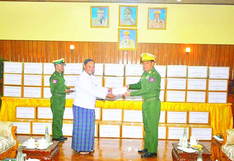 နိုင်ငံတော်ကာကွယ်ရေးနှင့် လုံခြုံရေးတာဝန်များကို စွမ်းစွမ်းတမံ ထမ်းဆောင်လျက်ရှိသော လုံခြုံရေးတပ်ဖွဲ့ဝင်များအတွက် စေတနာရှင်အလှူရှင်များက ဂုဏ်ပြုချီးမြှင့်ငွေများနှင့် စားသောက်ဖွယ်ရာများ လာရောက်ဂုဏ်ပြုပေးအပ်လျက်ရှိသည်။