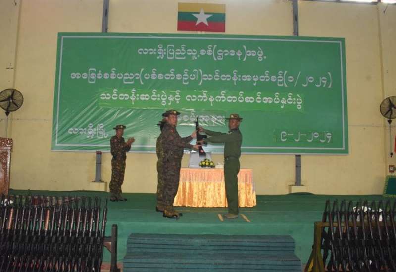 ရှမ်းပြည်နယ် (မြောက်ပိုင်း)၊ လားရှိုးမြို့၌ လားရှိုးပြည်သူ့စစ် (ဌာနေ) အဖွဲ့ အခြေခံစစ်ပညာသင်တန်းအမှတ်စဉ် (၁/၂၀၂၄) သင်တန်းဆင်းပွဲနှင့် လက်နက်တပ်ဆင်အပ်နှင်းပွဲကို ယနေ့နံနက်ပိုင်းတွင် လားရှိုးမြို့၊ ပြည်ထောင်စုအားကစားခန်းမ၌ပြုလုပ်ရာ ကာကွယ်ရေးဦးစီးချုပ်ရုံး (ကြည်း) မှ ဗိုလ်ချုပ် နိုင်နိုင်ဦး၊ အရှေ့မြောက်တိုင်းစစ်ဌာနချုပ် ဒုတိယတိုင်းမှူး ဗိုလ်မှူးချုပ် ကျော်ကျော်ထွန်းနှင့် အဖွဲ့ဝင်များ၊ ဌာနဆိုင်ရာတာဝန်ရှိသူများနှင့် ပြည်သူ့စစ် (ဌာနေ) တပ်ဖွဲ့ဝင်များ တက်ရောက်ကြသည်။