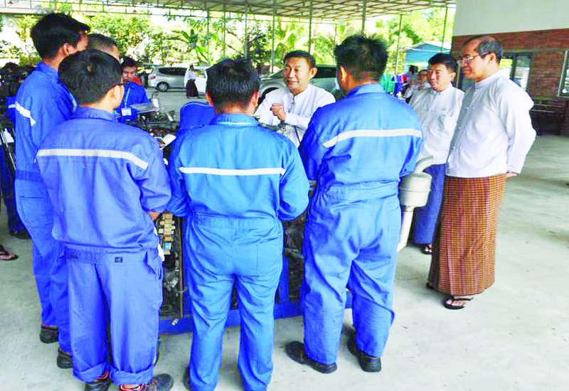 အလုပ်သမားဝန်ကြီးဌာန ဒုတိယဝန်ကြီး ဦးဝင်းရှိန်သည် တာဝန်ရှိသူများနှင့်အတူ ယနေ့နံနက်ပိုင်းတွင် ရန်ကုန်တိုင်းဒေသကြီး ဒဂုံမြို့သစ် (မြောက်ပိုင်း) မြို့နယ်ရှိ မြန်မာနိုင်ငံ လုပ်သားများကျွမ်းကျင်မှု “စံ” သတ်မှတ်ပြဋ္ဌာန်းရေးအဖွဲ့ (NSSA) အသိအမှတ်ပြုသင်တန်း ကျောင်းဖြစ်သည့် Yun Nadi Oo Vocational Training Center သို့ ကွင်းဆင်းကြည့်ရှုအားပေးသည်။