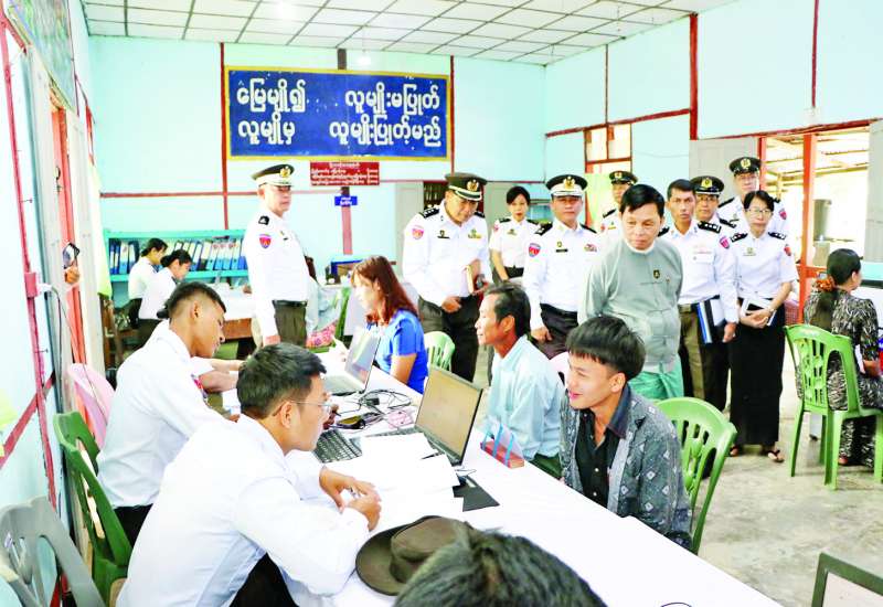 လူဝင်မှုကြီးကြပ်ရေးနှင့် ပြည်သူ့အင်အား ဝန်ကြီးဌာနပြည်ထောင်စုဝန်ကြီး ဦးမြင့်ကြိုင်သည် တာဝန်ရှိသူများနှင့်အတူ ယနေ့နံနက်ပိုင်းတွင် ဧရာဝတီတိုင်းဒေသကြီး ကန်ကြီးထောင့်မြို့သို့ သွားရောက်၍ လူဝင်မှုကြီးကြပ်ရေးနှင့်ပြည်သူ့အင်အားဝန်ကြီးဌာန ကန်ကြီးထောင့်မြို့နယ်ဦးစီးမှူးရုံး၌ မြို့နယ်ရုံးဝန်ထမ်းများနှင့်တွေ့ဆုံရာ ဦးစွာ မြို့နယ်ဦးစီးမှူးက မြို့နယ်ရုံး၏ လုပ်ငန်းများဆောင်ရွက်နေမှုနှင့် ဆက်လက်ဆောင်ရွက်မည့် လုပ်ငန်းအခြေအနေများကို ရှင်းလင်းတင်ပြသည်။