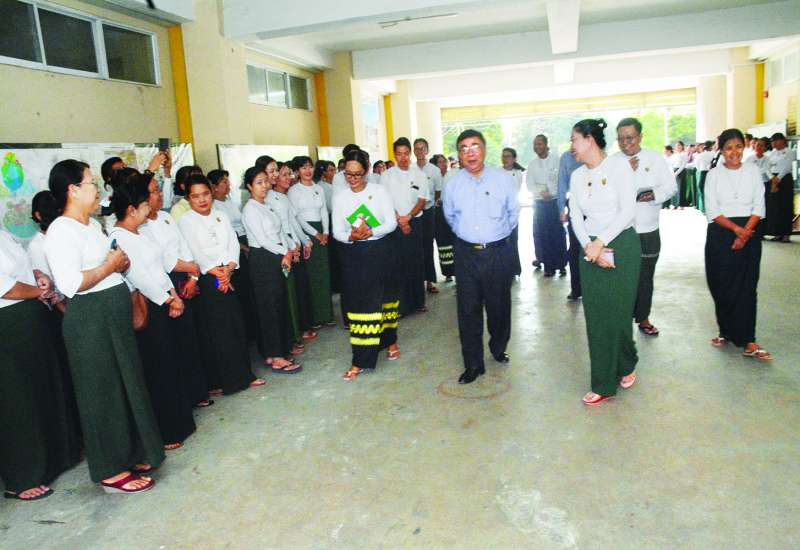 ပညာရေးဝန်ကြီးဌာန ပြည်ထောင်စုဝန်ကြီး ဒေါက်တာညွန့်ဖေသည် တာဝန်ရှိသူများနှင့်အတူ ယနေ့မွန်းလွဲပိုင်းတွင် ရန်ကုန်တက္ကသိုလ်သို့ ရောက်ရှိပြီး ကျောင်းဝင်းအတွင်း လှည့်လည် ကြည့်ရှုစစ်ဆေးသည်။