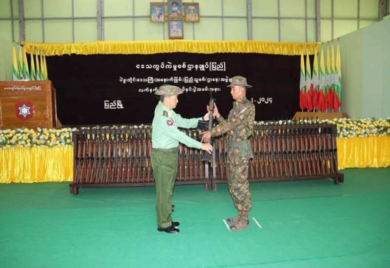 ပဲခူးတိုင်းဒေသကြီး(အနောက်ခြမ်း)ရှိ ပြည်သူ့စစ် (ဌာနေ) တပ်ဖွဲ့ဝင်များအား လက်နက်တပ်ဆင်အပ်နှင်းခြင်းကို ယနေ့နံနက်ပိုင်းတွင် ပြည်မြို့ရှိ နယ်မြေခံတပ်ရင်းခန်းမ၌ ပြုလုပ်ရာ ပဲခူးတိုင်းဒေသကြီးဝန်ကြီးချုပ် ဦးမျိုးဆွေဝင်း၊ ကာကွယ်ရေး ဦးစီးချုပ်ရုံး (ကြည်း) မှ ဒုတိယဗိုလ်ချုပ်ကြီး တေဇကျော်၊ တောင်ပိုင်းတိုင်းစစ်ဌာနချုပ် ပြည်တပ်နယ်မှ တာဝန်ရှိသူများ၊ ပြည်သူ့စစ် (ဌာနေ) တပ်ဖွဲ့ဝင်များ တက်ရောက်ကြသည်။