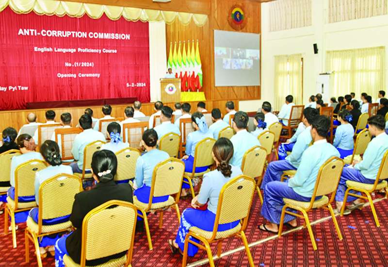 အဂတိလိုက်စားမှုတိုက်ဖျက်ရေးကော်မရှင် အင်္ဂလိပ်စာကျွမ်းကျင်မှု စွမ်းရည်မြှင့်သင်တန်းအမှတ်စဉ် (၁/၂၀၂၄) ဖွင့်ပွဲအခမ်းအနားကို ယနေ့နံနက် ၉ နာရီခွဲတွင် အဂတိလိုက်စားမှုတိုက်ဖျက်ရေးကော်မရှင်ရုံး စုပေါင်းခန်းမ၌ ကျင်းပရာ ကော်မရှင်ဥက္ကဋ္ဌ ဦးစစ်အေး၊ အတွင်းရေးမှူးနှင့် ကော်မရှင်အဖွဲ့ဝင်များ၊ ကော်မရှင်ရုံး ညွှန်ကြားရေးမှူးချုပ်များ၊ ဒုတိယညွှန်ကြားရေးမှူးချုပ်များ၊ ညွှန်ကြားရေးမှူးများ၊ ဒုတိယညွှန်ကြားရေးမှူးများနှင့် သင်တန်းသား သင်တန်းသူများ တက်ရောက်ကြသည်။