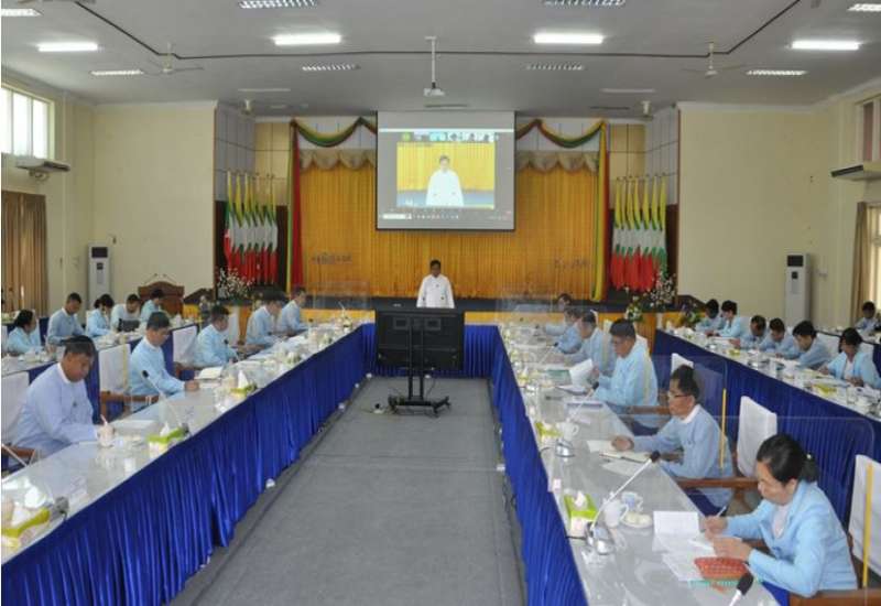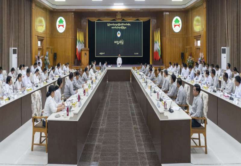 နိုင်ငံတော်စီမံအုပ်ချုပ်ရေးကောင်စီဥက္ကဋ္ဌ နိုင်ငံတော်ဝန်ကြီးချုပ်၏ လမ်းညွှန်မှာကြားချက်များအား ထပ်ဆင့်ပြန်လည်ရှင်းလင်းခြင်းအခမ်းအနားကို ယနေ့နံနက်ပိုင်းတွင် စက်မှုဝန်ကြီးဌာန ရုံးအမှတ်(၃၀)ရှိ အစည်းအဝေးခန်းမ၌ ကျင်းပသည်။
