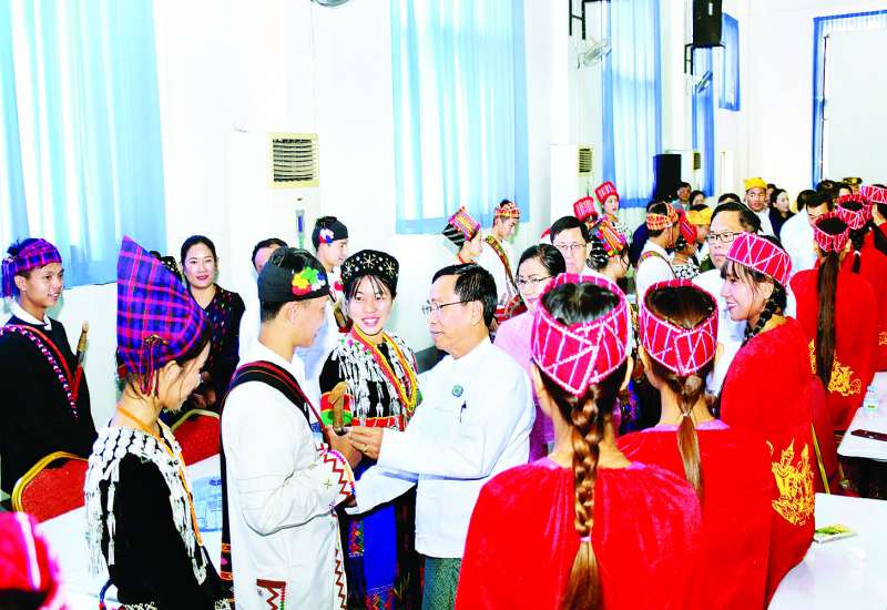 ၂၀၂၄ ခုနှစ် (၇၇) နှစ်မြောက် ပြည်ထောင်စုနေ့ ကျင်းပရေး စီမံခန့်ခွဲမှုကော်မတီဥက္ကဋ္ဌ နေပြည်တော်ကောင်စီဥက္ကဋ္ဌ မြို့တော်ဝန်ဦးသန်းထွန်းဦးသည် ယနေ့နံနက်ပိုင်းက (၇၇) နှစ်မြောက် ပြည်ထောင်စုနေ့အခမ်းအနားတွင် တိုင်းရင်းသားရိုးရာယဉ်ကျေးမှုအကများဖြင့် တက်ရောက်ပါဝင်ဆင်နွှဲမည့် တိုင်းဒေသကြီးနှင့်ပြည်နယ်များမှ တိုင်းရင်းသားရိုးရာယဉ်ကျေးမှုအဖွဲ့များအား နေပြည်တော်ဇမ္ဗူသီရိမြို့နယ်ရှိ အားကစားလေ့ကျင့်ရေးစခန်း စားရိပ်သာ၌ သွားရောက်တွေ့ဆုံနှုတ်ဆက်သည်။