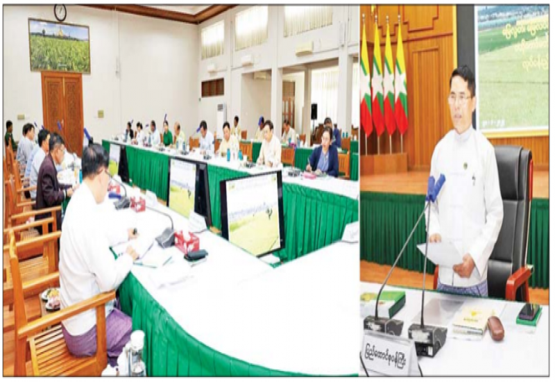 နိုင်ငံ့စီးပွားမြှင့်တင်ရေးရန်ပုံငွေဖြင့် ဆောင်ရွက်ဆဲ စိုက်ပျိုးရေးစီမံကိန်းလုပ်ငန်းများနှင့် ဆက်လက်ဆောင်ရွက်မည့် စိုက်ပျိုးရေးစီမံကိန်းလုပ်ငန်းများ အကောင်အထည်ဖော်ရေး လုပ်ငန်းညှိနှိုင်းအစည်းအဝေးကို ယနေ့မွန်းလွဲပိုင်းက စိုက်ပျိုးရေး၊ မွေးမြူရေးနှင့်ဆည်မြောင်းဝန်ကြီးဌာနရုံး အစည်းအဝေးခန်းမ၌ကျင်းပရာ စိုက်ပျိုးရေး၊ မွေးမြူရေးနှင့်ဆည်မြောင်းဝန်ကြီးဌာန၊ သမဝါယမနှင့် ကျေးလက်ဖွံ့ဖြိုးရေးဝန်ကြီးဌာနတို့မှ အမြဲတမ်းအတွင်းဝန်များ၊ ဦးစီးဌာနများမှ ညွှန်ကြားရေးမှူးချုပ်များ တက်ရောက်ကြပြီး တိုင်းဒေသကြီး/ ပြည်နယ်စိုက်ပျိုးရေးဦးစီးဌာနမှူးများ သမဝါယမဦးစီးဌာနမှူးများ၊ အသင်းအဖွဲ့များမှ တာဝန်ရှိသူများက အွန်လိုင်းစနစ်ဖြင့် တက်ရောက်ကြသည်။