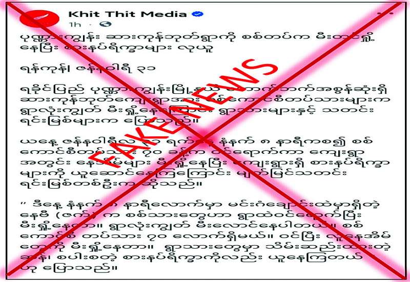 ရခိုင်ပြည်နယ် ပုဏ္ဏားကျွန်းမြို့နယ် တောင်ဘက်အစွန်းဆုံးရှိ ဆားကုန်ဘုတ်ကျေးရွာအား လုံခြုံရေးတပ်ဖွဲ့ဝင်များက ယနေ့နံနက်ပိုင်းတွင်ကျေးရွာအတွင်းဝင်ရောက်ကာ နေအိမ်များ မီးရှို့နေပြီးကျေးရွာရှိ စားနပ်ရိက္ခာများကို ယူဆောင်နေကြကြောင်း သတင်းတု၊ သတင်းမှားများကို တရားမဝင်ပြည်ဖျက်မီဒီယာ Khit Thit က မဟုတ်မမှန်ရေးသား ဖြန့်ဝေနေသည်ကို တွေ့ရှိရသည်။