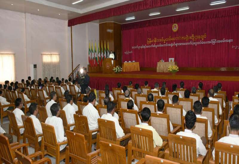 နိုင်ငံ့ဝန်ထမ်းအကြီးအမှူးများအတွက် ဥပဒေအသိပညာပြန့်ပွားရေး သင်တန်း အမှတ်စဉ် (၄) သင်တန်းဖွင့်ပွဲအခမ်းအနားကို ယနေ့မွန်းလွဲပိုင်းတွင် ဥပဒေရေးရာဝန်ကြီးဌာန မြေညီထပ် အစည်းအဝေးခန်းမ၌ ကျင်းပသည်။