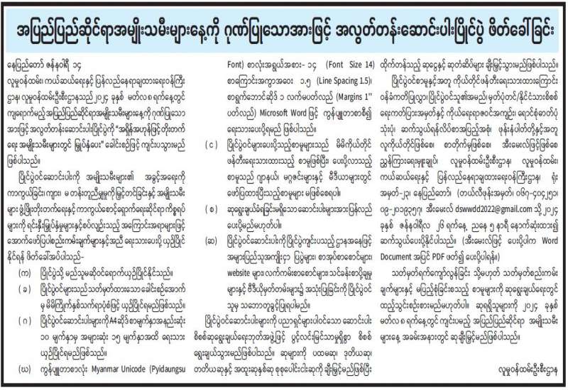 အပြည်ပြည်ဆိုင်ရာအမျိုးသမီးများနေ့ကို ဂုဏ်ပြုသောအားဖြင့် အလွတ်တန်းဆောင်းပါးပြိုင်ပွဲ ဖိတ်ခေါ်ခြင်း