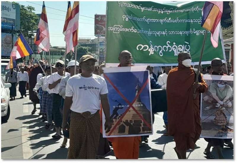 အကြမ်းဖက်သောင်းကျန်းသူများက ဘုရားစေတီပုထိုးများ၊ ဗုဒ္ဓဆင်းတုတော်များအား ဖျက်ဆီးစော်ကားမှုအား ကန့်ကွက်ရှုတ်ချပွဲများကို တိုင်းဒေသကြီးနှင့် ပြည်နယ်အသီးသီး၌ ကျင်းပပြုလုပ်လျက်ရှိသည်။