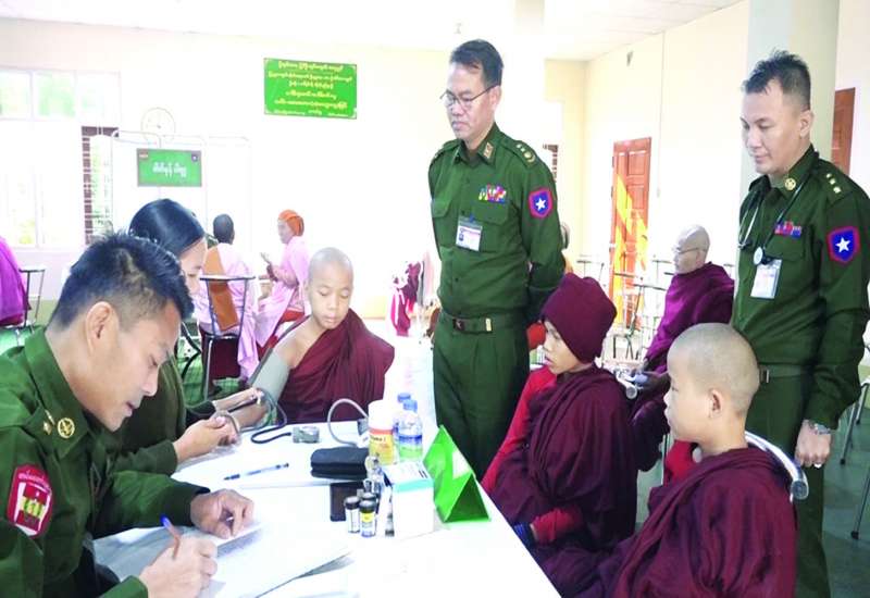 မန္တလေးတိုင်းဒေသကြီး အောင်မြေသာစံမြို့နယ် ဥပုသ်တော်ရပ်ကွက်နှင့် ပတ်ဝန်းကျင်ကျေးရွာများမှ သံဃာတော်များ၊ သာသနာ့နွယ်ဝင်သီလရှင်များနှင့် ဒေသခံပြည်သူများအား ဇန်နဝါရီ ၁၃ ရက်က အလယ်ပိုင်းတိုင်းစစ်ဌာနချုပ် နယ်မြေခံဆေးကုသရေးအဖွဲ့က အဆိုပါရပ်ကွက်ရှိ မြနန္ဒာကျောင်းတိုက်၌ ကျန်းမာရေးစောင့်ရှောက်မှုလုပ်ငန်းများ ဆောင်ရွက်ပေးသည်။