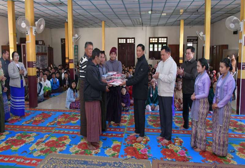 လူမှုဝန်ထမ်း၊ ကယ်ဆယ်ရေးနှင့်ပြန်လည်နေရာချထားရေးဝန်ကြီးဌာန ပြည်ထောင်စုဝန်ကြီး ဒေါက်တာစိုးဝင်းသည် ရှမ်းပြည်နယ်ဝန်ကြီးချုပ် ဦးအောင်ဇော်အေး၊ နယ်စပ်ရေးရာဝန်ကြီးဌာန ဒုတိယဝန်ကြီး ဗိုလ်ချုပ်ဖြိုးသန့်၊ တိုင်းရင်းသားလူမျိုးများရေးရာဝန်ကြီးဌာန ဒုတိယဝန်ကြီး ဦးဇော်အေးမောင်တို့နှင့်အတူ ယနေ့နံနက်ပိုင်းတွင် ညောင်ရွှေမြို့ မင်္ဂလာရပ်ကွက်ရှိ ဘုရားကျိန်းကျောင်းတွင် ခိုလှုံနေကြသော ယာယီတိုက်ပွဲရှောင်ပြည်သူများအား သွားရောက်တွေ့ဆုံ၍ ရင်းရင်းနှီးနှီး အားပေးစကားပြောကြားသည်။