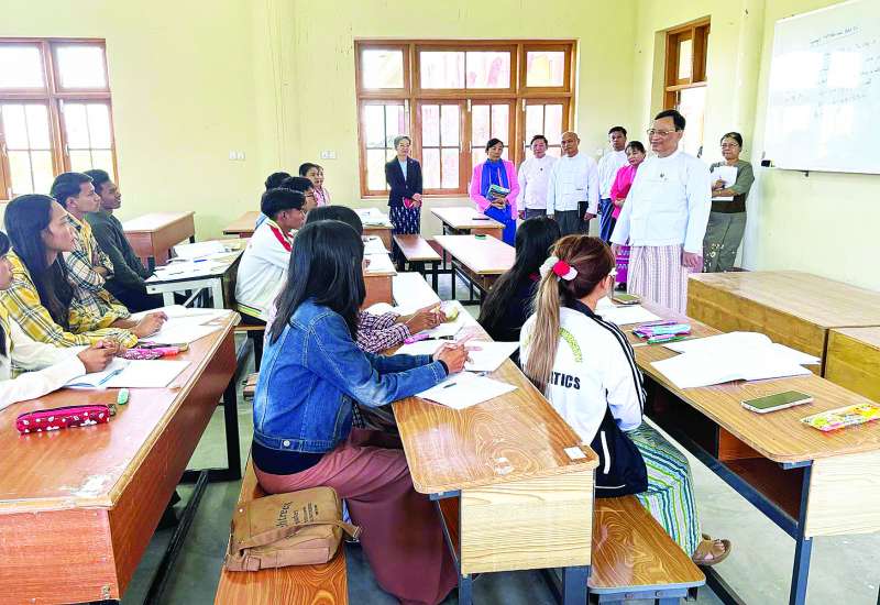 ပညာရေးဝန်ကြီးဌာန ဒုတိယဝန်ကြီး ဒေါက်တာဇော်မြင့်သည် ယနေ့နံနက်ပိုင်းတွင် စစ်ကိုင်းပညာရေးတက္ကသိုလ်သို့ရောက်ရှိပြီး စာသင်ခန်းများတွင် ကျောင်းသားကျောင်းသူများ အေးချမ်းစွာပညာသင်ယူနေမှုကို လှည့်လည်ကြည့်ရှုအားပေးသည်။