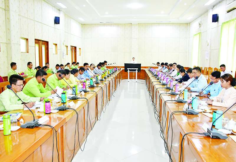 ပြည်ထောင်စုနယ်မြေ နေပြည်တော်အတွင်း MSME ကုန်ထုတ်လုပ်ငန်းများ ဖွံ့ဖြိုးတိုးတက်ရေးနှင့် အခွန်ဘဏ္ဍာငွေ ပြည့်ဝစွာရရှိရေးအတွက် အခွန်စည်းကြပ်မှုလုပ်ငန်းများကို ကြီးကြပ်ဆောင်ရွက်နိုင်ရေးနှင့် စပ်လျဉ်း၍ လုပ်ငန်းညှိနှိုင်းအစည်းအဝေးကို ယနေ့မွန်းတည့် ၁၂ နာရီတွင် နေပြည်တော်ကောင်စီရုံး အစည်းအဝေးခန်းမ(၁)၌ ကျင်းပရာ နေပြည်တော် ကောင်စီဥက္ကဋ္ဌ ဦးသန်းထွန်းဦး၊ နေပြည်တော်ကောင်စီအဖွဲ့ဝင်ဦးဇေယျာလင်း၊ ဌာနဆိုင်ရာများနှင့် ခရိုင်စီမံ အုပ်ချုပ်ရေးအဖွဲ့ဥက္ကဋ္ဌများ တက်ရောက်ကြသည်။
