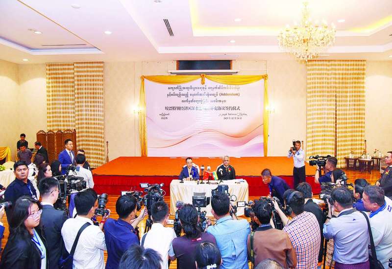 ကျောက်ဖြူအထူးစီးပွားရေးဇုန်တွင် ရေနက်ဆိပ်ကမ်းစီမံကိန်း အကောင်အထည်ဖော် ဆောင်ရွက်နိုင်ရေးအတွက် လုပ်ငန်းလုပ်ကိုင်ခွင့်သဘောတူစာချုပ် (Concession Agreement) ကို ဖြည့်စွက်သည့် နောက်ဆက်တွဲစာချုပ် (Adden-dum) လက်မှတ်ရေးထိုးခြင်း အခမ်းအနားကို ဒီဇင်ဘာ ၂၆ ရက် ညနေပိုင်းက နေပြည်တော်ရှိ Horizon Lake View Hotel ၌ ကျင်းပခဲ့သည်။ လက်မှတ်ရေးထိုးခြင်း အခမ်းအနားအပြီးတွင် မြန်မာအထူးစီးပွားရေးဇုန်ဆိုင်ရာ ဗဟိုလုပ်ငန်းအဖွဲ့ ဥက္ကဋ္ဌ ပြည်ထောင်စုအစိုးရအဖွဲ့ရုံးဝန်ကြီးဌာန (၁) ပြည်ထောင်စုဝန်ကြီး ဦးအောင်နိုင်ဦးက သတင်းမီဒီယာများနှင့် တွေ့ဆုံသည်။