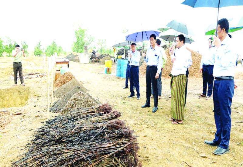 သမဝါယမနှင့် ကျေးလက်ဖွံ့ဖြိုးရေးဝန်ကြီးဌာန ဒုတိယဝန်ကြီး ဦးမြင့်စိုးသည် တာဝန်ရှိသူများနှင့်အတူ ယမန်နေ့နံနက်ပိုင်းက မကွေးတိုင်းဒေသကြီး ဆင်ပေါင်ဝဲမြို့နယ် ချောင်းကောက်ကျေးရွာသို့ သွားရောက်ပြီး အောင်ကောင်းမြတ် လယ်ယာကုန်ထုတ်နှင့် အထွေထွေစီးပွားရေးလုပ်ငန်း သမဝါယမအသင်းက ဆောင်ရွက်နေသော နှမ်းရိုးအခြေခံ သဘာဝမြေဩဇာ ထုတ်လုပ် နေမှုကို ကြည့်ရှုအားပေးပြီး ဒုတိယဝန်ကြီးက အသင်းအနေဖြင့် နှမ်းရိုးအခြေခံသဘာဝမြေဩဇာ ထုတ်လုပ်ရာတွင် အကျိုးအမြတ်ကို အဓိကမထားဘဲ ဒေသခံတောင်သူများ၏ စိုက်ခင်းများသို့ အရောက်သွားပြီး တောင်သူပိုင် နှမ်းရိုးများ၊ နွားချေး၊ ဖွဲကြမ်း၊ ဖွဲနုတို့ကို အသုံးပြုပြီး တင်လဲရည်၊ EM ဖျော်ရည်များဖြင့် သဘာဝမြေဩဇာများ ထုတ်လုပ်နိုင်အောင် ကြိုးပမ်းဆောင်ရွက်ရန် တိုက်တွန်းမှာကြားသည်။