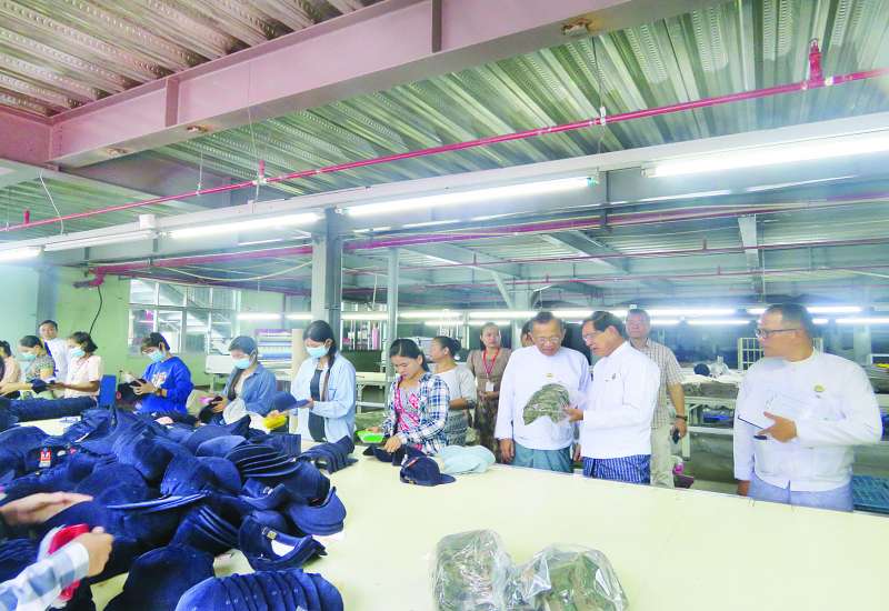 မြန်မာနိုင်ငံ ရင်းနှီးမြှုပ်နှံမှုကော်မရှင် ဒုတိယဥက္ကဋ္ဌ၊ ရင်းနှီးမြှုပ်နှံမှုနှင့် နိုင်ငံခြားစီးပွားဆက်သွယ်ရေး ဝန်ကြီးဌာန ပြည်ထောင်စုဝန်ကြီး ဒေါက်တာကံဇော်နှင့် ရန်ကုန်တိုင်းဒေသကြီးဝန်ကြီးချုပ် ဦးစိုးသိန်းတို့သည် ဌာနဆိုင်ရာတာဝန်ရှိသူများနှင့်အတူ ယနေ့နံနက်ပိုင်းတွင် ရန်ကုန်တိုင်းဒေသကြီး မင်္ဂလာဒုံမြို့နယ် ရန်ကုန်စက်မှုဇုန်၌ CMP စနစ်အသုံးပြု၍ ဦးထုပ်အမျိုးမျိုး ချုပ်လုပ်ခြင်းလုပ်ငန်းဆောင်ရွက်နေသည့် Asia Caps Co., Ltd ကို သွားရောက်ကြည့်ရှုအားပေးကြသည်။