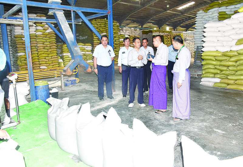 စီးပွားရေးနှင့်ကူးသန်းရောင်းဝယ်ရေးဝန်ကြီးဌာန ပြည်ထောင်စုဝန်ကြီး ဦးထွန်းအုံသည် တာဝန်ရှိသူများနှင့်အတူ ယနေ့နံနက်ပိုင်းတွင် ရန်ကုန်တိုင်းဒေသကြီး လှိုင်သာယာမြို့နယ် ရွှေလင်ဗန်းစက်မှုဇုန်ရှိ တစ်ရက်လျှင် တန်ချိန် ၄၇၀ ကျ ရွှေဝါရောင်ဆန်စက်သို့ရောက်ရှိပြီး စက်ရုံအတွင်း ကုန်ကြမ်းများမှ ပြည်တွင်းဖြန့်ဖြူးရန်နှင့် ပြည်ပတင်ပို့ရန် အဆင့်မြင့်ဆန်များအား သန့်စင်ခြင်း၊ ထပ်မံကြိတ်ဖွတ်ခြင်း၊ ဆန်ကွဲခွဲထုတ်ခြင်း၊ ဆန်အရောင်တင်ခြင်းနှင့် အရောင်ခွဲခြားခြင်း၊ သတ်မှတ်အရည်အသွေးပြည့်မီရေး စစ်ဆေးခြင်း၊ အိတ်သွတ်ထုပ်ပိုးခြင်းနှင့် ဆန်များကို ပိုးသတ်မှိုင်းတိုက် ပြုလုပ်ထားရှိမှု၊ ပြည်တွင်းဖြန့်ဖြူးရန် စီစဉ်ထားရှိမှု၊ ပြည်ပသို့ တင်ပို့ရန် သိုလှောင်ထားရှိမှု၊ တိရစ္ဆာန်အစာ သိုလှောင်ထားရှိမှုတို့ကို ကြည့်ရှုစစ်ဆေးပြီး ကုန်ထုတ်လုပ်မှု တိုးမြှင့်ဆောင်ရွက်ရေး၊ ကုန်သွယ်မှုမြှင့်တင်ရေး၊ ကုန်သွယ်မှု လွယ်ကူချောမွေ့စေရေး ကုန်သွယ်ဖက်နိုင်ငံများရှိ ကုမ္ပဏီများနှင့် စေ့စပ်ညှိနှိုင်း ပေါင်းစပ်ဆောင်ရွက်ရေး မှာကြားသည်။