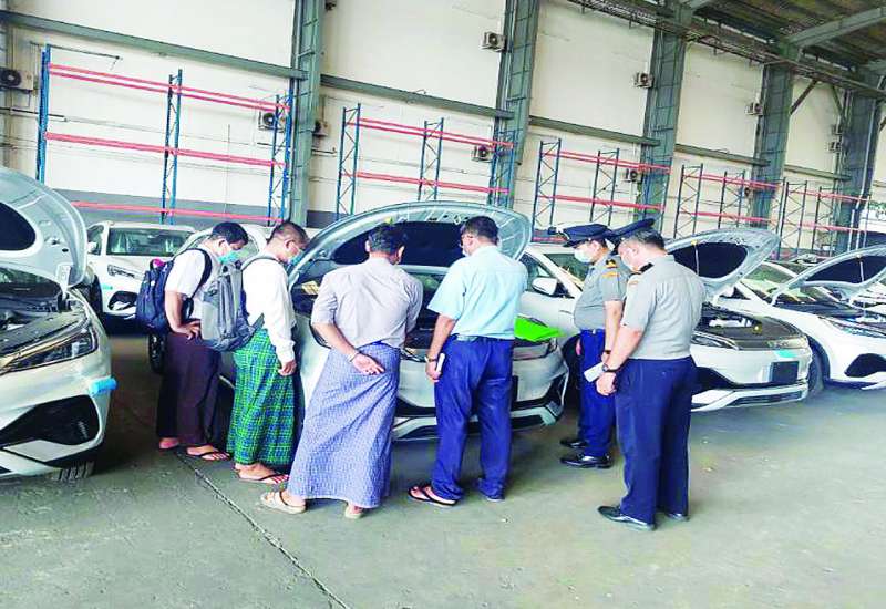 အမျိုးသားအဆင့် လျှပ်စစ်သုံးယာဉ်နှင့် ဆက်စပ်လုပ်ငန်းများ ဖွံ့ဖြိုးတိုးတက်ရေး ဦးဆောင်ကော်မတီ၏ ခွင့်ပြုချက်ဖြင့် Innogen Myanmar Co., Ltd. က တင်သွင်းလာသော တရုတ်နိုင်ငံထုတ် GAC Toyota BZ4X အမျိုးအစား လျှပ်စစ်သုံးမော်တော်ယာဉ်များ၊ Essential Motor Co., Ltd. က တင်သွင်းလာသော တရုတ်နိုင်ငံထုတ် BYD Atto3 EV အမျိုးအစား လျှပ်စစ်သုံး မော်တော်ယာဉ်များနှင့် Chin Dwin Shan Construction Co., Ltd. က တင်သွင်းလာသော Faw Toyota bZ4X အမျိုးအစားလျှပ်စစ်သုံးမော်တော်ယာဉ်များသည် ရန်ကုန် ဆိပ်ကမ်းသို့ရောက်ရှိလာသဖြင့် ယနေ့တွင် လုပ်ထုံးလုပ်နည်းနှင့်အညီ ထုတ်ယူခွင့်ပြုခဲ့ကြောင်း သိရသည်။