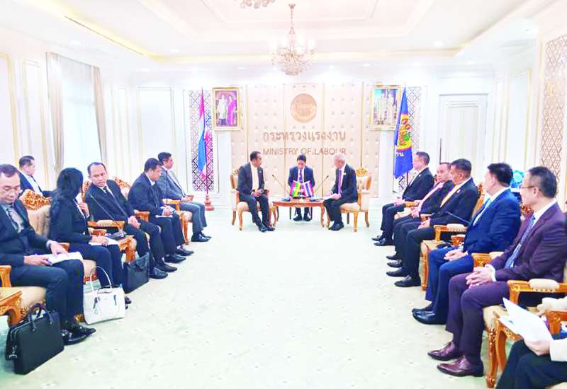 အလုပ်သမားဝန်ကြီးဌာန ပြည်ထောင်စုဝန်ကြီး ဦးမြင့်နောင် ဦးဆောင်၍ စီမံကိန်းနှင့် ဘဏ္ဍာရေးဝန်ကြီးဌာန၊ လူဝင်မှုကြီးကြပ်ရေးနှင့် ပြည်သူ့အင်အားဝန်ကြီးဌာနနှင့် အလုပ်သမားဝန်ကြီးဌာနတို့မှ အဆင့်မြင့်အရာရှိကြီးများပါဝင်သည့် ကိုယ်စားလှယ် (၆)ဦးတို့သည် ထိုင်းနိုင်ငံ အလုပ်သမားဝန်ကြီး၏ ဖိတ်ကြားမှုအရ အလုပ်သမားရေးရာကိစ္စရပ်များ ပူးပေါင်းဆောင်ရွက်နိုင်ရေး မြန်မာ-ထိုင်း နှစ်နိုင်ငံ အလုပ်သမားဝန်ကြီးများ တွေ့ဆုံဆွေးနွေးမှု ပြုလုပ်ရန် ယနေ့နံနက်ပိုင်းတွင် ရန်ကုန်မြို့မှ ထိုင်းနိုင်ငံသို့ လေကြောင်းခရီးဖြင့် ထွက်ခွာသွားရာ တာဝန်ရှိသူများက ရန်ကုန်အပြည်ပြည်ဆိုင်ရာ လေဆိပ်၌ ပို့ဆောင်နှုတ်ဆက်ကြသည်။