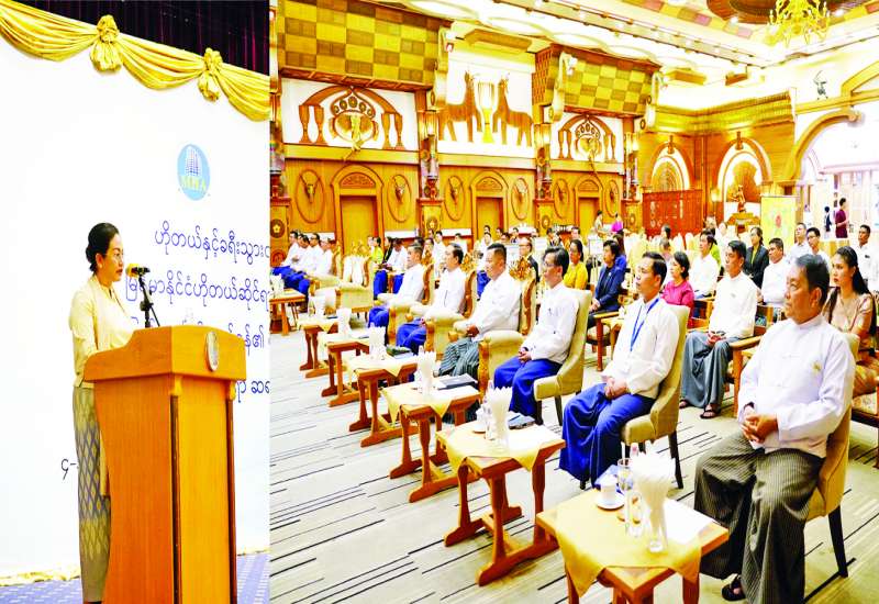 ဟိုတယ်နှင့် ခရီးသွားလာရေးဝန်ကြီးဌာနနှင့် မြန်မာနိုင်ငံ ဟိုတယ်ဆိုင်ရာ လုပ်ငန်းရှင်များအသင်းတို့ ပူးပေါင်း၍ နေပြည်တော်ဟိုတယ်ဇုန်၏ စီစဉ်ဆောင်ရွက်မှုဖြင့် ဧည့်ဝန်ဆောင်မှုဆိုင်ရာ ဆရာဖြစ် (TOT) သင်တန်းဖွင့်ပွဲအခမ်းအနားကို ယနေ့မွန်းလွဲပိုင်းတွင် နေပြည်တော်ရှိ တုံဂပူရိဟိုတယ်၌ ကျင်းပရာ ပြည်ထောင်စုဝန်ကြီး ဒေါက်တာသက်သက်ခိုင် တက်ရောက်အမှာစကား ပြောကြားသည်။