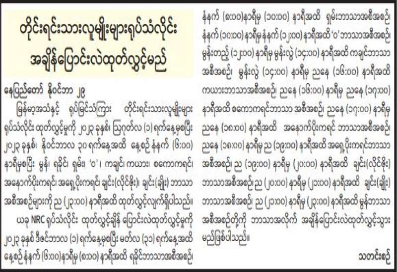 မြန်မာနိုင်ငံကို ချစ်ကြည်ရေးအလည်အပတ်ခရီးစဉ်နဲ့ မြန်မာ - တရုတ်ရေကြောင်းလုံခြုံရေး လေ့ကျင့်ခန်းဆောင်ရွက်ဖို့ ရောက်ရှိနေတဲ့ တရုတ်ပြည်သူ့သမ္မတနိုင်ငံ တရုတ်ပြည်သူ့လွတ်မြောက်ရေးတပ်မတော် (ရေ) မှ စစ်ရေယာဉ်သုံးစင်းမှ စစ်သည်များက ဒီနေ့မှာတော့ ရန်ကုန်မြို့အတွင်းမှာ ချစ်ကြည်ရေးခရီးလည်ပတ်ခြင်း၊ သန်လျင်တပ်နယ်မှာတော့ ချစ်ကြည်ရေးဘတ်စကက်ဘောပြိုင်ပွဲကျင်းပပြုလုပ်ခြင်းနဲ့ မြန်မာ့တပ်မတော် (ရေ) မှ အရာရှိများက စစ်ရေးယာဉ်များကို သွားရောက်လေ့လာခြင်း၊ ညစာစားပွဲ တည်ခင်းဧည့်ခံခြင်းလုပ်ငန်းများကို လုပ်ဆောင်ခဲ့ပါတယ်။ နယ်စပ်ဒေသတရားဥပဒေစိုးမိုးရေး၊ လုံခြုံရေးကိစ္စရပ်များကို ပူးပေါင်းဆောင်ရွက်လျက်ရှိရာမှာ မြန်မာနိုင်ငံဘက်ကို တရားမဝင် ဝင်ရောက်နေထိုင်တဲ့ အမျိုးသား ၂၁၁ ဦး၊ အမျိုးသမီး ၅၁ ဦး စုစုပေါင်း ၂၆၂ ဦးကို တရုတ်ပြည်သူ့သမ္မတနိုင်ငံမှ တာဝန်ရှိ သူများထံကို လွှဲပြောင်းပေးနိုင်ခဲ့ပါတယ်။ အားလုံးလွှဲပြောင်းပေးခဲ့မှု ၁၀၁၇၀ ရှိပြီးဖြစ်ပါတယ်။ နှစ်နိုင်ငံအစိုးရနဲ့ နှစ်နိုင်ငံတပ်မတော်များအနေနဲ့ နီးကပ်စွာ၊ ရင်းနှီးစွာနေထိုင်လျက်ရှိပါတယ်။ ဒီဟာတွေနဲ့ ပတ်သက်ပြီး အနောက်နိုင်ငံတွေက ထောက်ပံ့ထားတဲ့ ပြည်ဖျက်မီဒီယာများအနေနဲ့ အမျိုးမျိုးဝေဖန်နေတာတွေရှိပါတယ်။ ဘယ်လိုပဲဖြစ်ဖြစ် ကျွန်တော်တို့သည် ငြိမ်းချမ်းစွာ အတူယှဉ်တွဲနေထိုင်ရေးမူကြီး (၅) ရပ်နဲ့အညီ နှစ်ပေါင်းများစွာ ချစ်ကြည်ရင်းနှီးစွာ နေထိုင်လာခဲ့တာ ဖြစ်ပါတယ်။ တရုတ် - မြန်မာနှစ်နိုင်ငံဆက်ဆံရေး၊ တပ်မတော်ချင်း ဆက်ဆံရေး၊ ပြည်သူလူထုချင်း ဆက်ဆံရေးဟာ နောင်မှာလည်း ပိုမိုရင်းနှီးချစ်ကြည်နီးကပ်လာမှာဖြစ်ကြောင်း ပြောကြားလိုပါတယ်။