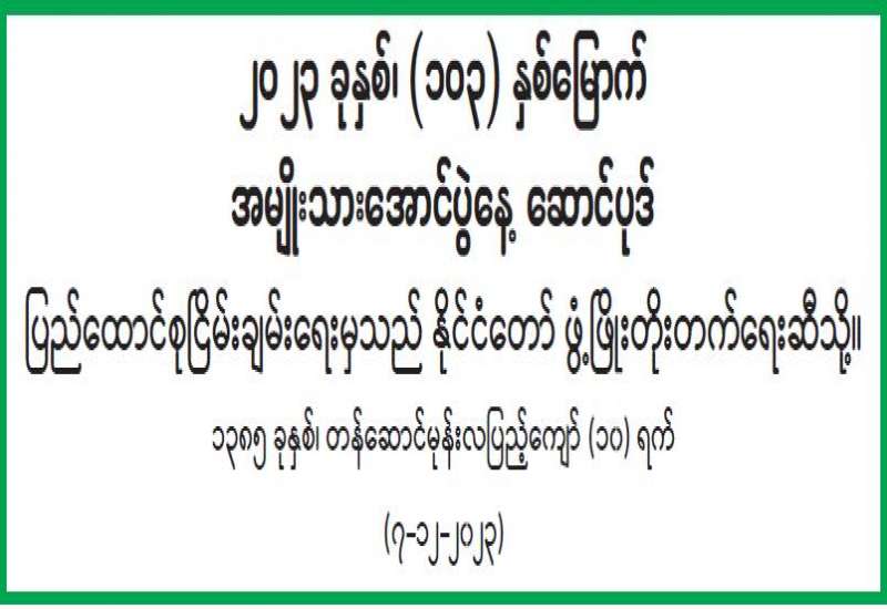 အသံမစဲ ဥပ္ပါတသန္တိပါဠိတော် ရွတ်ဖတ်ပူဇော်ပွဲ ဖွင့်ပွဲမင်္ဂလာအခမ်းအနားကို ယနေ့နံနက်ပိုင်းတွင် နေပြည်တော်ပုဗ္ဗသီရိမြို့နယ်ရှိ သီရိမင်္ဂလာဥသျှစ်ကုန်းကျောင်း၌ ကျင်းပသည်။