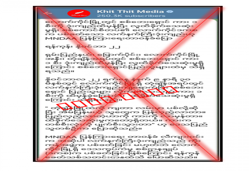 ရှမ်းပြည်နယ် (မြောက်ပိုင်း)၊ နမ့်ခမ်းမြို့အတွင်းသို့ နိုဝင်ဘာ ၂၁ ရက်ညနေပိုင်းတွင် တပ်မတော်မှလက်နက်ကြီးများဖြင့် ပစ်ခတ်တိုက်ခိုက်ခဲ့ကြောင်းနှင့် ဒေသခံပြည်သူများ သေဆုံးထိခိုက်ဒဏ်ရာရခဲ့ကြောင်းကို လူမှုကွန်ရက်စာမျက်နှာများ၌ မဟုတ်မမှန်သတင်းမှားများ ထုတ်လွှင့်ဖော်ပြလျက်ရှိသည်ကို တွေ့ရှိရသည်။