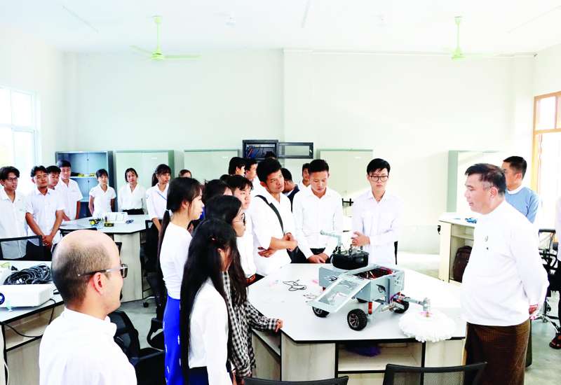သိပ္ပံနှင့်နည်းပညာဝန်ကြီးဌာန ပြည်ထောင်စုဝန်ကြီး ဒေါက်တာမျိုးသိန်းကျော် သည် တာဝန်ရှိသူများနှင့်အတူ ယနေ့မွန်းလွဲပိုင်းတွင် နေပြည်တော် နည်းပညာတက္ကသိုလ်နှင့် အစိုးရစက်မှုလက်မှုသိပ္ပံ (နေပြည်တော်)တို့ကို သွားရောက်ကြည့်ရှုစစ်ဆေးသည်။