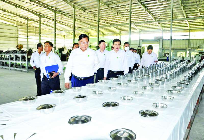 စက်မှုဝန်ကြီးဌာန ပြည်ထောင်စုဝန်ကြီး ဒေါက်တာချာလီသန်းသည် ယနေ့နံနက်ပိုင်းတွင် မန္တလေးတိုင်းဒေသကြီး ကျောက်ဆည်မြို့ရှိ အိမ်သုံးပစ္စည်းစက်ရုံ(မင်းစု)ကို သွားရောက်ကြည့်ရှု စစ်ဆေးသည်။
