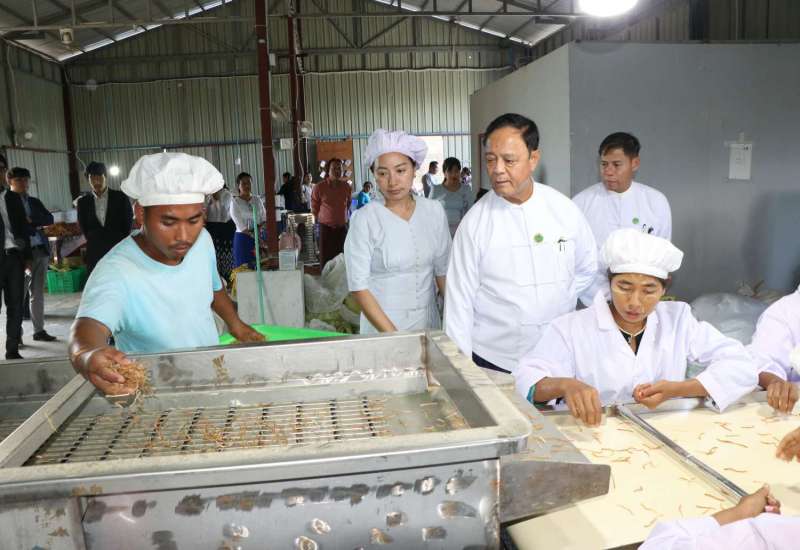 သမဝါယမနှင့် ကျေးလက်ဖွံ့ဖြိုးရေးဝန်ကြီးဌာန ပြည်ထောင်စုဝန်ကြီး ဦးလှမိုးသည် တာဝန်ရှိသူများနှင့်အတူ ယနေ့မွန်းလွဲပိုင်းတွင် ဇေယျာသီရိမြို့နယ် စပ်ကုန်းကျေးရွာသို့ ရောက်ရှိပြီး စိမ်းလဲ့မြေသမဝါယမအသင်းနှင့် နရိန္ဒြာကုမ္ပဏီတို့ အကျိုးတူပူးပေါင်းဆောင်ရွက်လျက်ရှိသော စီးပွားဖြစ်အသေးစား မျှစ်ခြောက်ကုန်ထုတ်စက်ရုံ လည်ပတ်နေမှု အခြေအနေများကို ကြည့်ရှုစစ်ဆေးသည်။