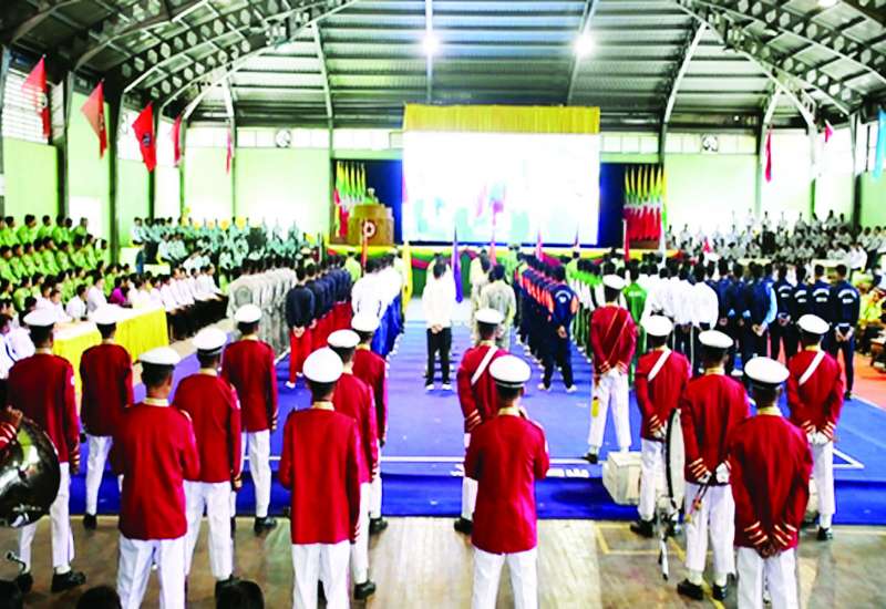 (၅၁)ကြိမ်မြောက် တပ်မတော်ကာကွယ်ရေးဦးစီးချုပ် ဒိုင်း၊ တပ်မတော်(ကြည်း၊ ရေ၊ လေ) ပြေးခုန်ပစ်ပြိုင်ပွဲဖွင့်ပွဲကို ယနေ့ညနေပိုင်းတွင် နေပြည်တော်ကောင်စီနယ်မြေ ဇေယျာသီရိတပ်မတော်အားကစားကွင်း၌ ကျင်းပပြုလုပ်ရာ တပ်မတော်ကာကွယ်ရေးဦးစီးချုပ်ကိုယ်စား နေပြည်တော်တိုင်းစစ်ဌာနချုပ် တိုင်းမှူး ဗိုလ်ချုပ်စောသန်းလှိုင်နှင့်အဖွဲ့ဝင်များ၊ အရာရှိ၊ စစ်သည်၊ မိသားစုများ၊ ဒိုင်အဖွဲ့ဝင်များ၊ ဖိတ်ကြားထားသူများနှင့် ပြိုင်ပွဲဝင်အားကစားသမားများ တက်ရောက်ကြသည်။